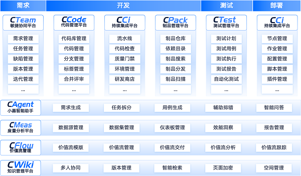 嘉为蓝鲸DevOps一站式研发效能解决方案,以“全流程自动化+可视化管控”为核心,构建起覆盖研发全生命周期的一体化能力矩阵: