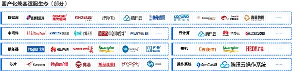 嘉为蓝鲸深度参与信创生态建设,是信息技术应用创新工作委员会、广东省信息技术应用创新产业联盟、广州市信息技术应用创新行业协会等信创会员单位。目前,嘉为蓝鲸已实现国内芯片(鲲鹏、飞腾、海光等)、操作系统(麒麟、统信、中科方德等)、中间件(中创、东方通、普元等)、数据库(达梦、人大金仓、万里等)、服务器(华为TaiShan、长城、浪潮等)等多领域信创生态产品的兼容适配,为用户信创落地实践打下坚实的基础。