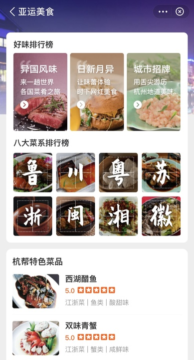 城市招牌杭帮菜:来杭州观看亚运会怎能不领略杭帮菜美味?本主题旨在为来杭游客提供本地人认可的正宗杭帮菜,从当地名菜中感受杭城的魅力。